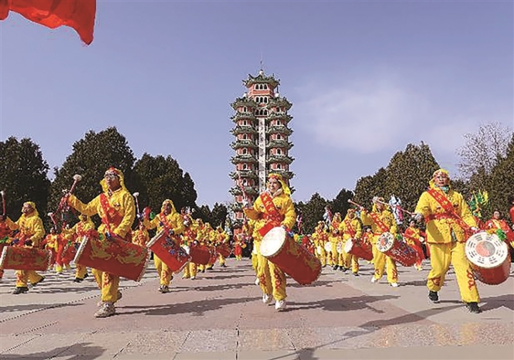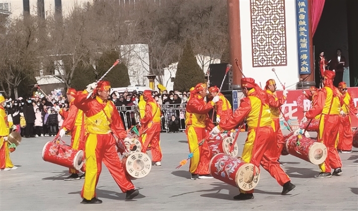2月11日,來自會寧縣會師鎮(zhèn)的社火隊在紅軍會寧會師舊址景區(qū)表演,為廣大游客送歡樂。常琦彪 攝...